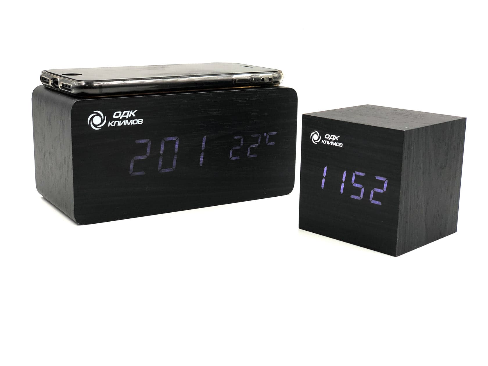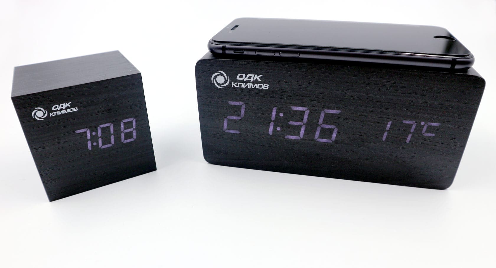 По часам, мы уже были знакомы с надёжным производителем. Помимо часов из запроса, мы предложили и новую модель часов. Она имеет встроенную беспроводную зарядку для смартфонов. При этом, имеет все остальные функции, которые хочет клиент: проекционный дисплей, часы, будильник, термометр.